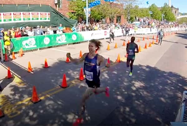 In her first marathon ever, O'Keeffe took a hugely impressive win in the women's race, breaking the U.S. Trials record with a time of 2:22:10.