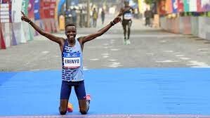 In the men’s race, Ebenyo and compatriot Chales Matata ran with several of their fellow Kenyans, as well as Ethiopia’s Addisu Gobena. The pack stayed together until 13km when Ebenyo and Matata made a break.