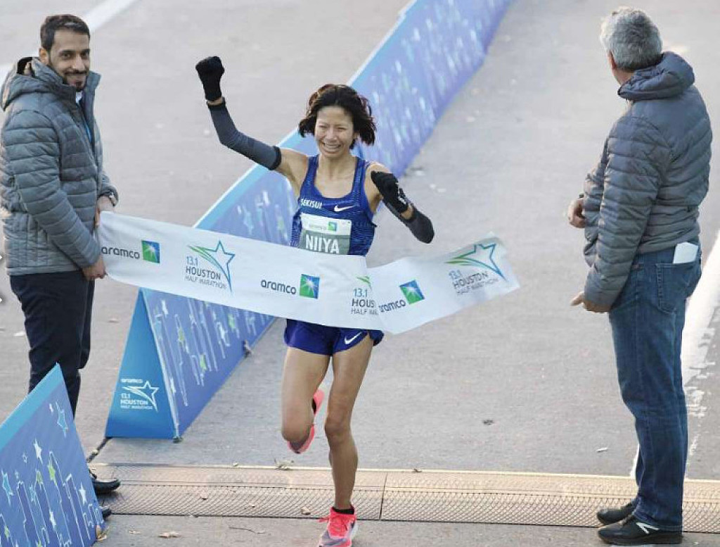 When Niiya was closing in on the finish, there was no runner within sight of the 31-year-old. She ran the third-fastest time in Houston on this course for women in the half marathon. Niiya, who represented Japan at the 2012 Summer Olympics, averaged a 5:05-minute mile.