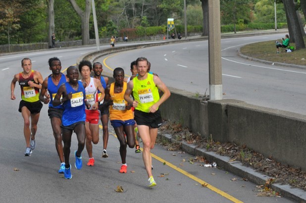 In the men’s open division, a pack of 17, led by Bravin Kiptoo, went through the first mile in a scorching 4:21.