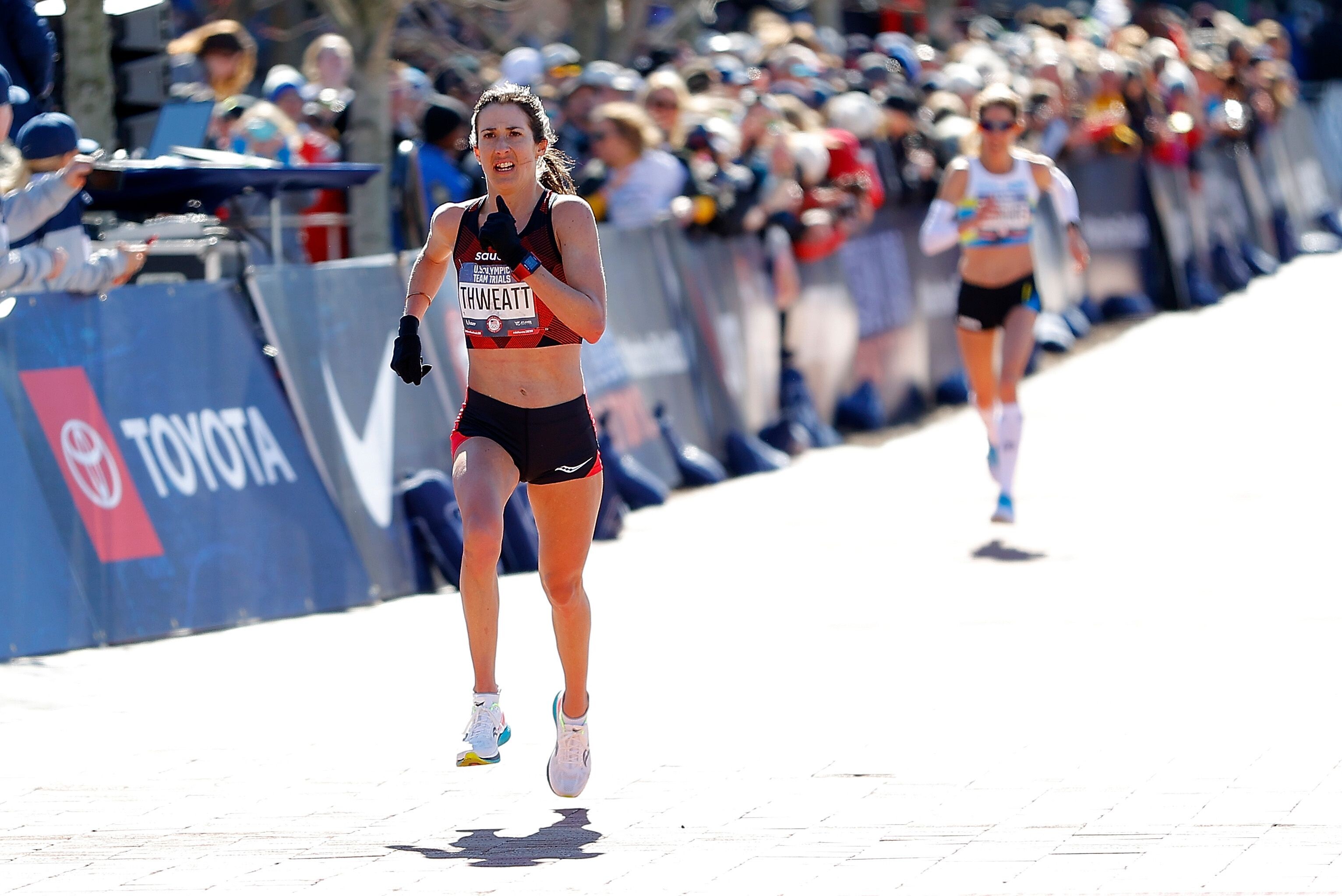 Now running professionally for Saucony, Thweatt is coming off an injury and said she went into Monday after only three weeks of training.