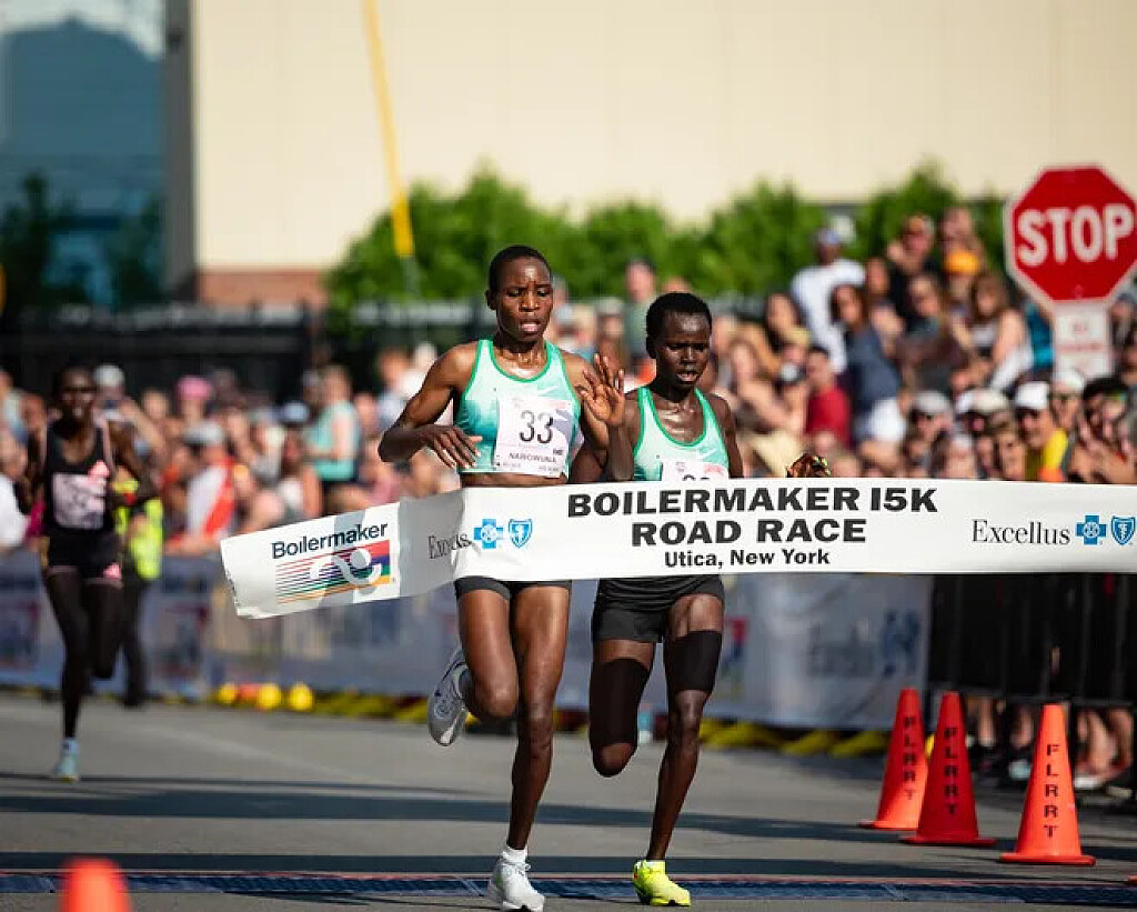 Nawowuna won by a margin of less than .2 seconds, with the two breaking the ribbon side-by side in 49:17.82 and 49:18.00. Both were born in Kenya and now run out of West Chester, Pennsylvania.