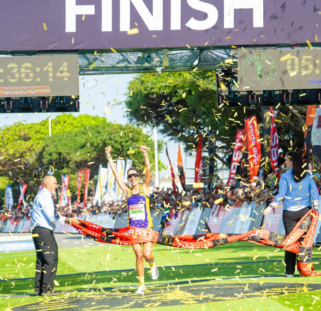 The new finish line on Masabalala Yengwa Avenue, adjacent to Durban’s People’s Park, added a festive atmosphere with expanded hospitality and club support zones.