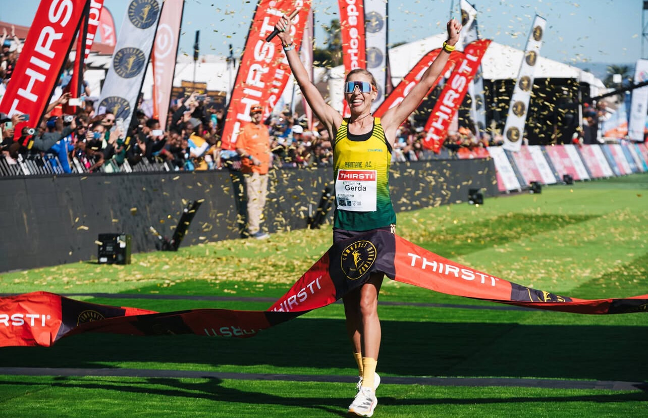 28-year-old Gerda Steyn has enjoyed a meteoric rise from amateur to professional in the space of just five years. After finishing as runner-up last year, Steyn took a six-week break from the sport before preparing to tackle the New York Marathon, finishing 13th in a PR of 2:31. The 2018 and 2019 Two Oceans winner made it clear in advance that her goal this year was to win and that is what she did this morning.
