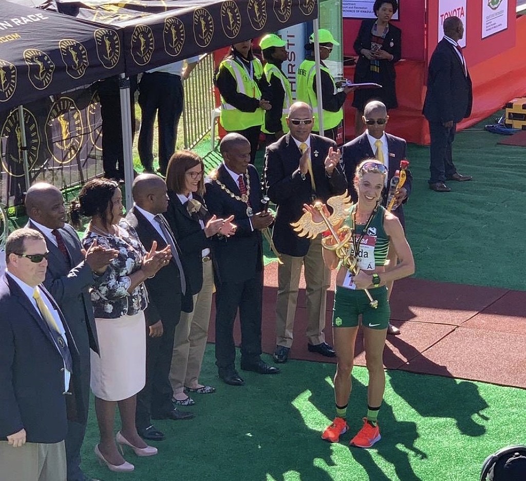 Kenya’s Shelmith Muriuki, in her Comrades debut, finished third, while Olympic marathoner Irvette van Zyl impressed with a strong fourth-place debut.