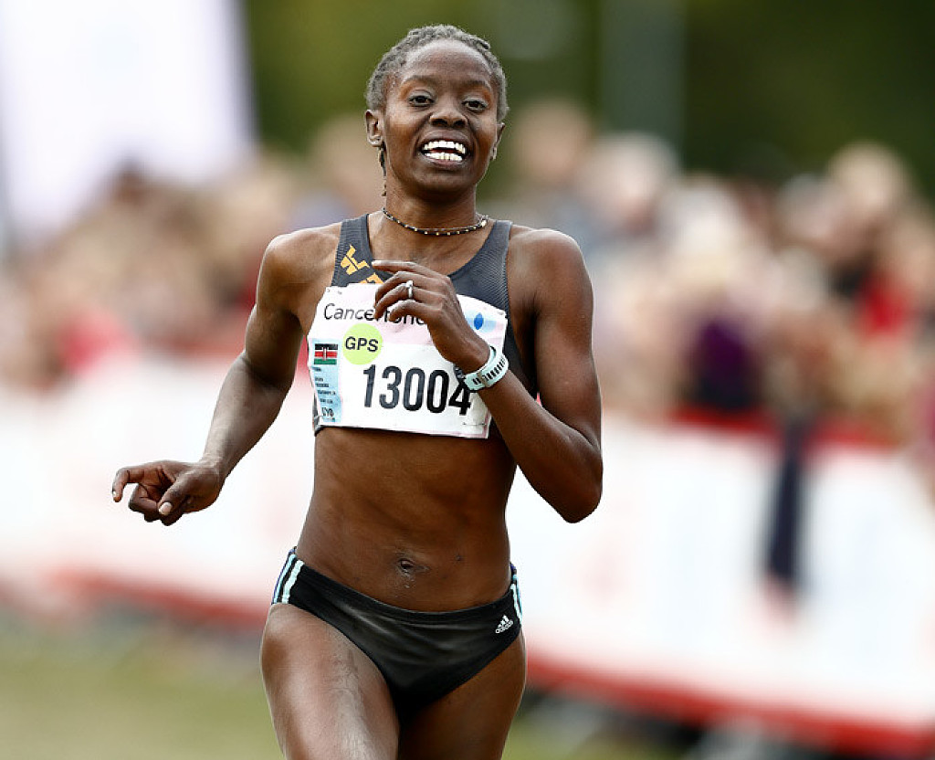 But her energy ran out and instead Agai came blowing from behind in a more measured race strategy to take the win and receive the flowers and be wrapped in the Kenyan flag.