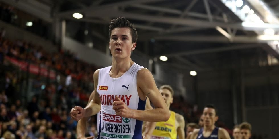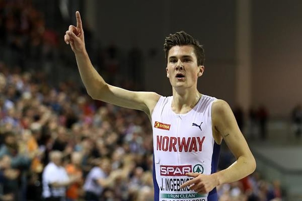 For Jakob Ingebrigtsen (1500m world rank 8), the hardest part of his night was not the race – not the eight minutes he spent extending his margin of supremacy over the best distance runners in Europe. No, the 18-year-old’s most difficult task was finding a Norwegian flag.