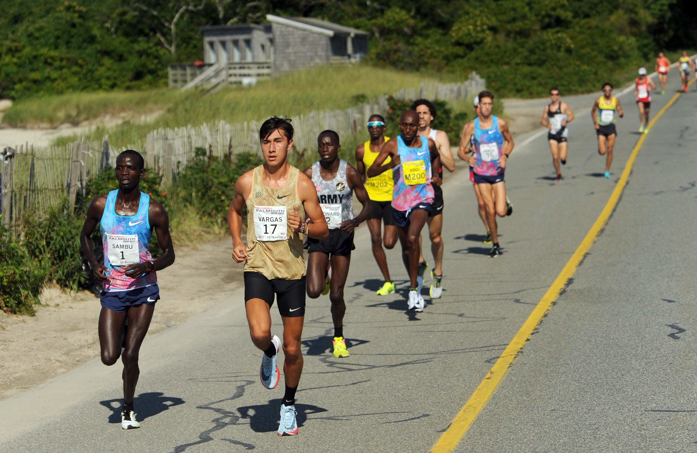 The 2019 podium of Leonard Korir, Stephen Sambu, and Edward Cheserek return. Korir, an Olympian, became the first American man to win the Falmouth Road Race since 1988. He has 10 USATF national titles and holds the fastest-ever marathon debut by an American (2:077:56).