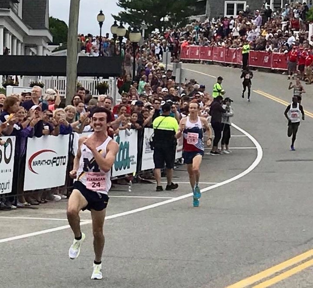 Flanagan set up his strategy in advance. “I was out with my family at the Black Dog Café and I took a run on the course,” said Flanagan. “I noticed a crosswalk just before the final turn and decided I would make my move there. I knew, if I could hold off the pack until we got to the final downhill there was no way they could catch me.”