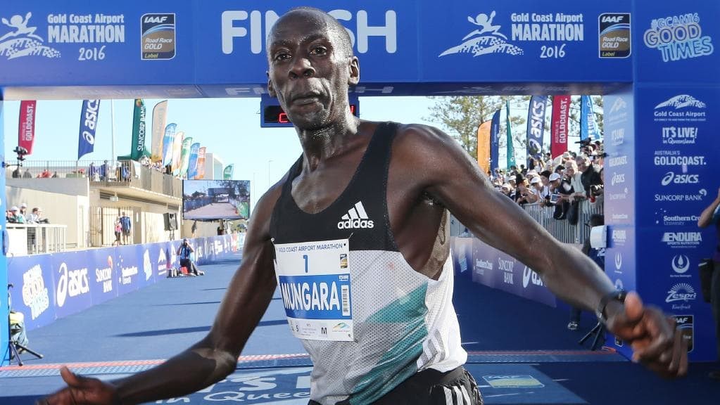 Mungara edged out Kawauchi by just one second to win the 2016 Gold Coast Marathon in a finish that came down to the wire with a sprint between the pair in the finish chute, creating an unforgettable highlight on the event’s timeline.
