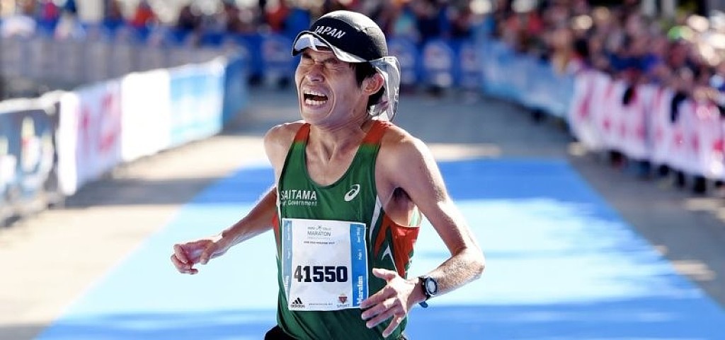 During the race Shitara suffered a mishap, bleeding from both nipples early on. "It rained right before the start," he said, "and once I started running it started chafing. I was a little worried about it, but if you want to compete at the top of the game then there are no excuses."