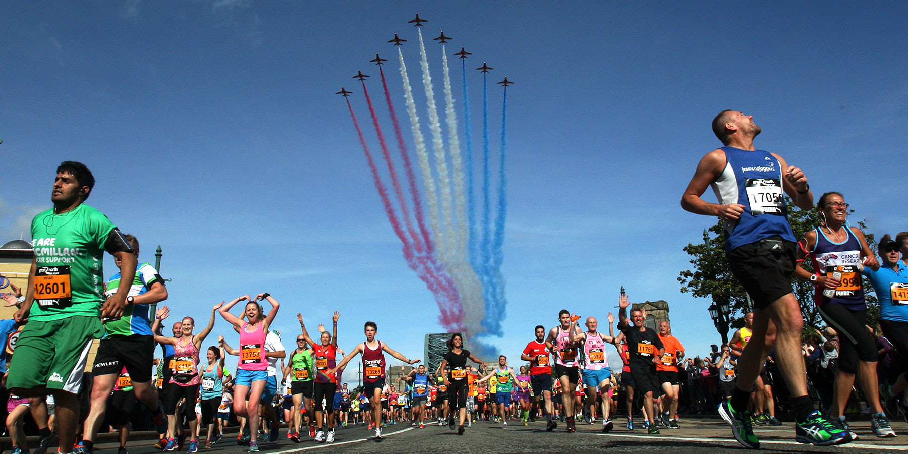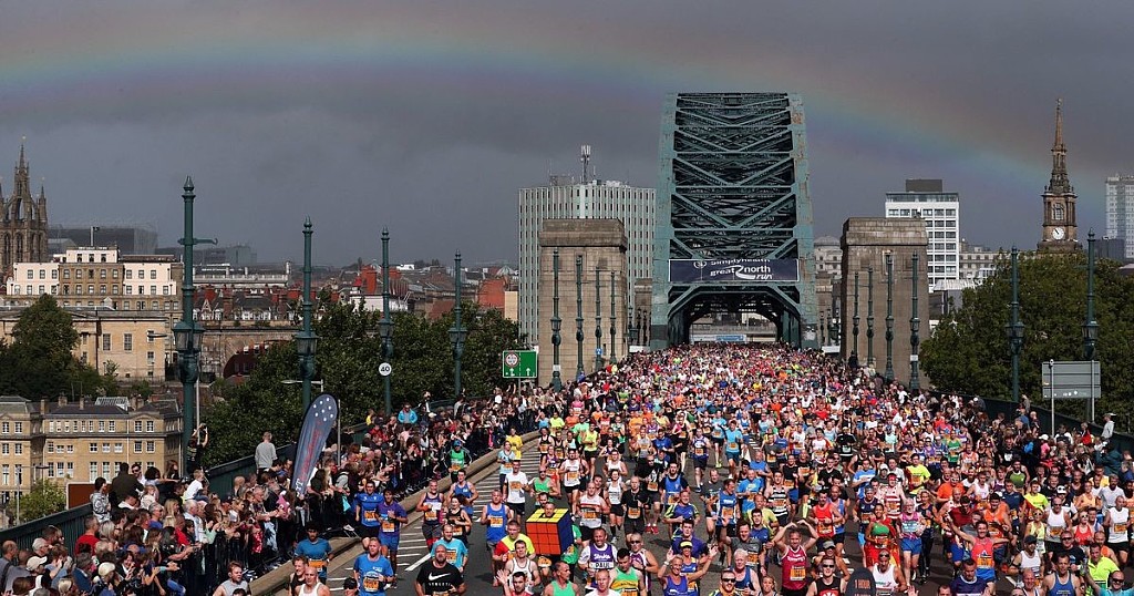 The annual 13.1-mile race starts in Newcastle city centre, crosses the River Tyne and goes through Gateshead before finishing by the sea in South Shields.