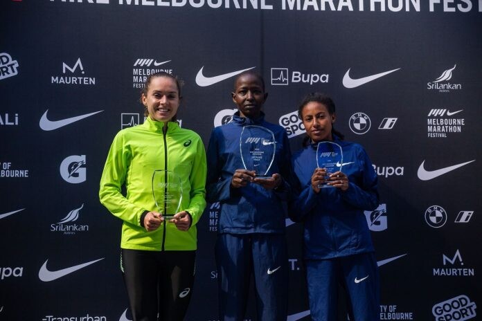 The Queenslander won the Melbourne Marathon on Sunday in two hours, 28 minutes and 13 seconds, beating local Sarah Klein by nearly three minutes. Kate Mason, also from Melbourne, completed the women's podium in 2:34:08.