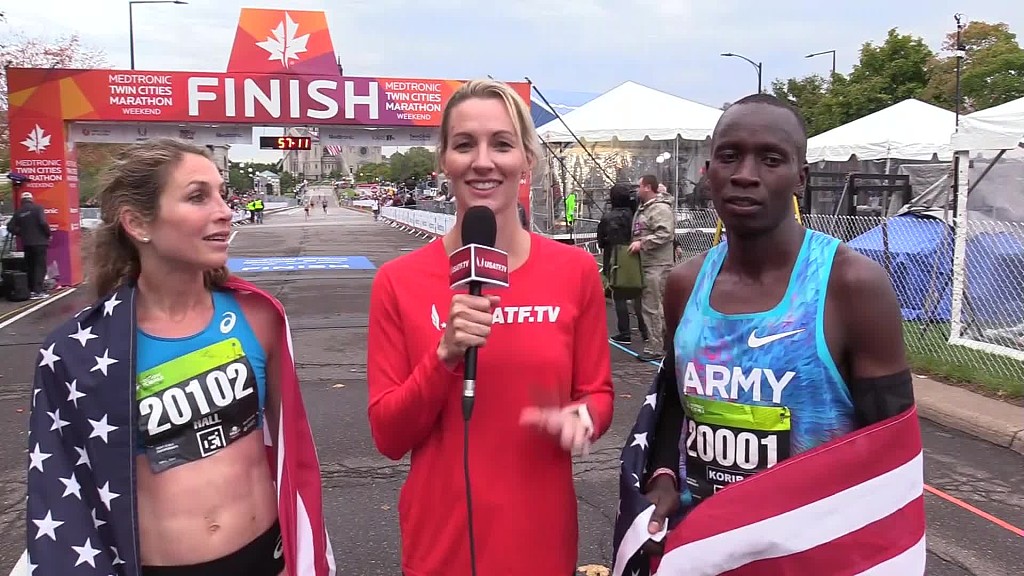 “It was so fun to be out here again,” said Hall, 36. “This race is really tough. Last year, I couldn’t even run marathon pace. It’s really encouraging to be able to run a good amount faster. I have my sister and her kids out there cheering, they live right on the course. That gave me a big boost.”