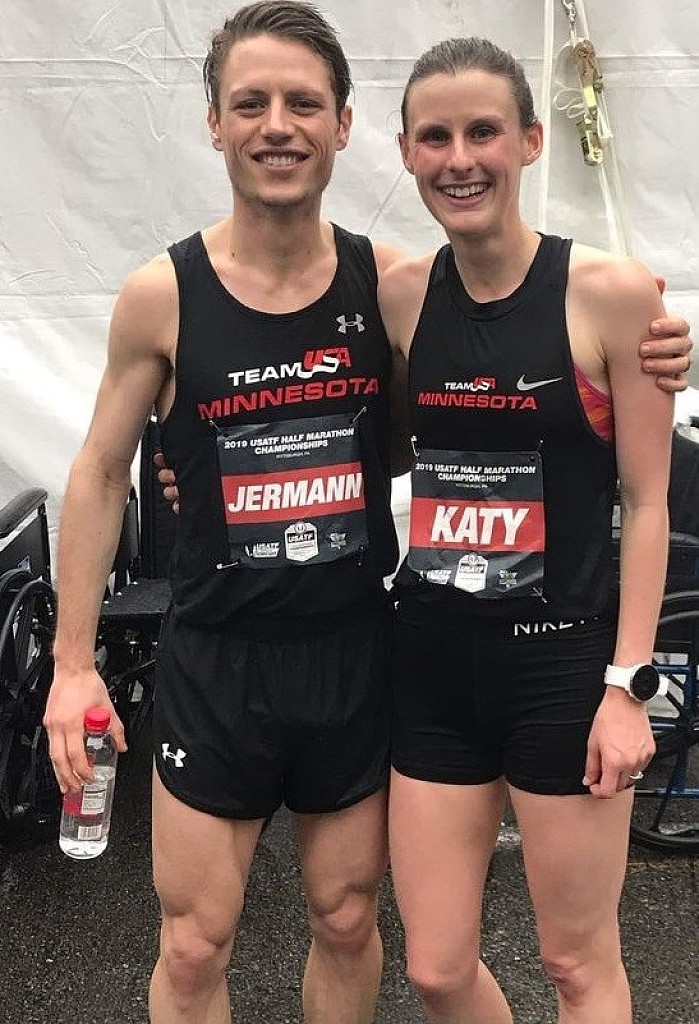 The two met while running at Iowa State, where Katy was a Big 12 champion in the 5,000 and 10,000 meters, but they didn’t really become friendly until after graduation. They reconnected at a training camp in Flagstaff, Ariz., started dating in January of 2017 and were married last summer.
