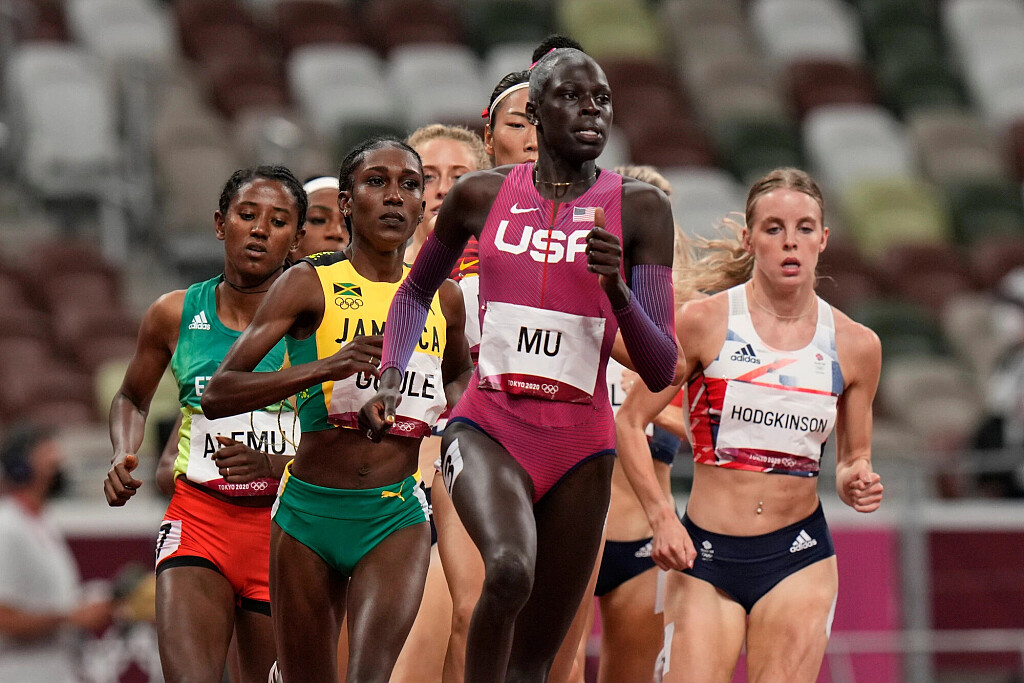 Mu led from start to finish, covering the first lap in 54.60. She beat the field by 2.5 seconds as her fellow American Kate Grace finished second in 1:57.60 and Jamaican Natoya Goule was third in a time of 1:57.71.