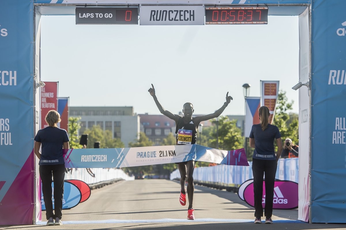 Four Kenyans ran to the finish line in under one hour. The Prague Half Marathon was dominated by Keneth Kiprop Renju in a time of 59:28.