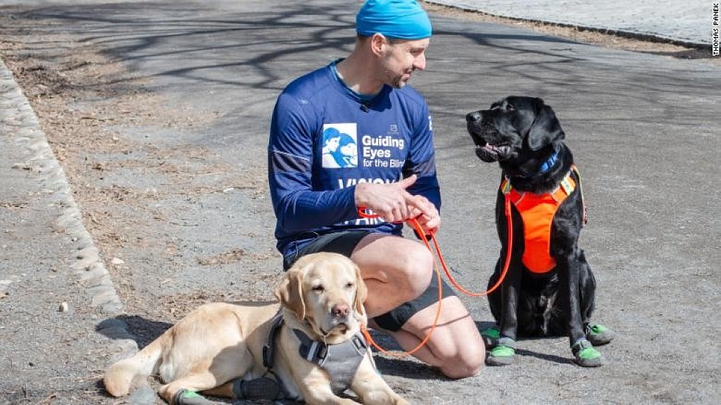 more...Thomas Panek and his running guide dogs Westley, Waffle and Gus will make history on Sunday in the 2019 New York City Half Marathon.