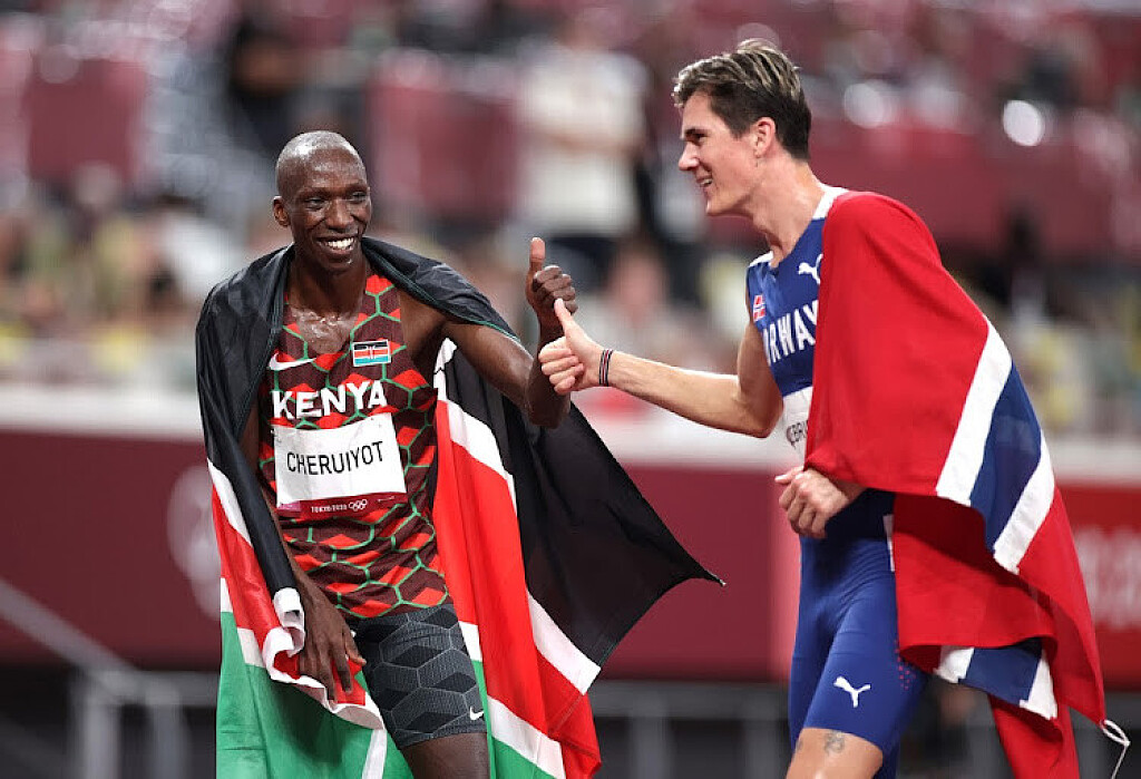 Uganda’s Oscar Chelimo, the bronze medalist last year, made his way to the front of the chase pack, trying to bridge the gap to the young Kenyan. Ingebrigtsen, meanwhile, was near the back, showing no interest in making a move.