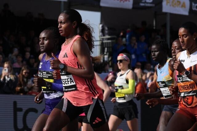 From the gun, the pace was unrelenting. The lead group, dominated by Ethiopian and Kenyan contenders, surged through the early checkpoints with intent, setting the tone for what would become a historically fast contest. Assefa, calm yet decisive, positioned herself perfectly before gradually turning the race into a test of pure strength and precision.