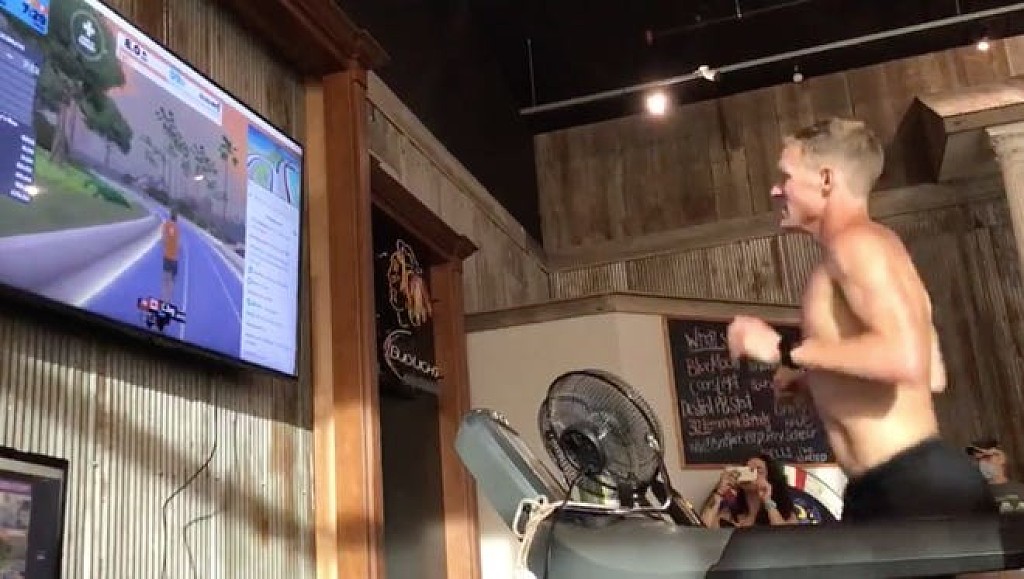 Running on a treadmill in a pub in Morton and keeping track of his progress on Zwift, VanEtten ran an impressively steady pace throughout. For the most part, he hovered between 4:10 and 4:20 per kilometre, and he never ran a kilometre slower than 4:58.