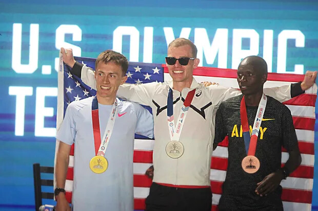 Conner Mantz, Clayton Young, and Leonard Korir, the top three finishers in the 2024 U.S. Olympic Trials who will be racing the marathon in the Paris Olympics on August 10, will be competing as Team USA Red in the Bolder Boulder’s International Pro Team Challenge that follows the citizen’s races. (Korir is expected to officially be named to the U.S. team in early May based on final pre-Olympic international rankings.)