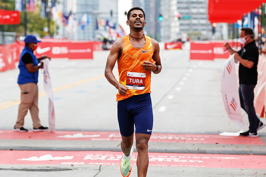 More than 19,000 runners participated in Sunday’s marathon. Kenya’s Edwin Kiptoo won the men’s event, completing the course in 2:10, and Ethiopia’s Amane Beriso won the women’s race in a course record time of 2:25
