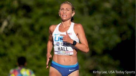 Hall’s PR is 2:20:32 from the Marathon Project in Chandler, Arizona, a one-time event set up for elite runners during the pandemic. That PR puts her fifth on the U.S. all-time list, behind Emily Sisson, Keira D’Amato, Betsy Saina, and Deena Kastor.