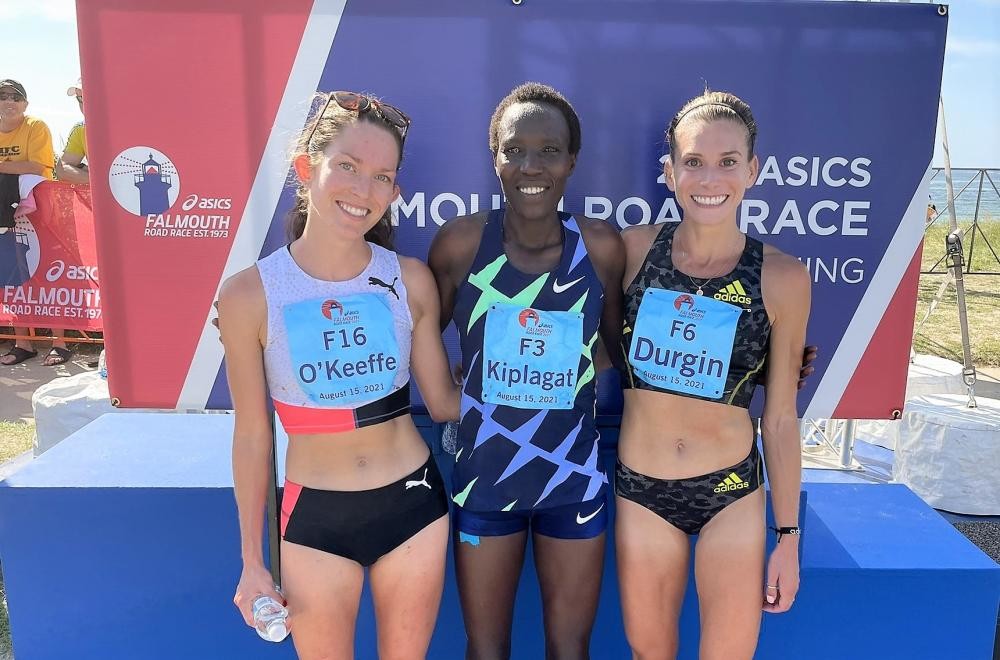 Durgin edged O’Keefe by one second to secure her third runner-up finish of the summer. “This is a beautiful course. We were all working together feeding off each other,” O’Keefe said. She was second at the U.S. 10K and 6K Championships. O’Keefe, a six-time All American at Stanford now coached by Olympian Amy Cragg, finished third.