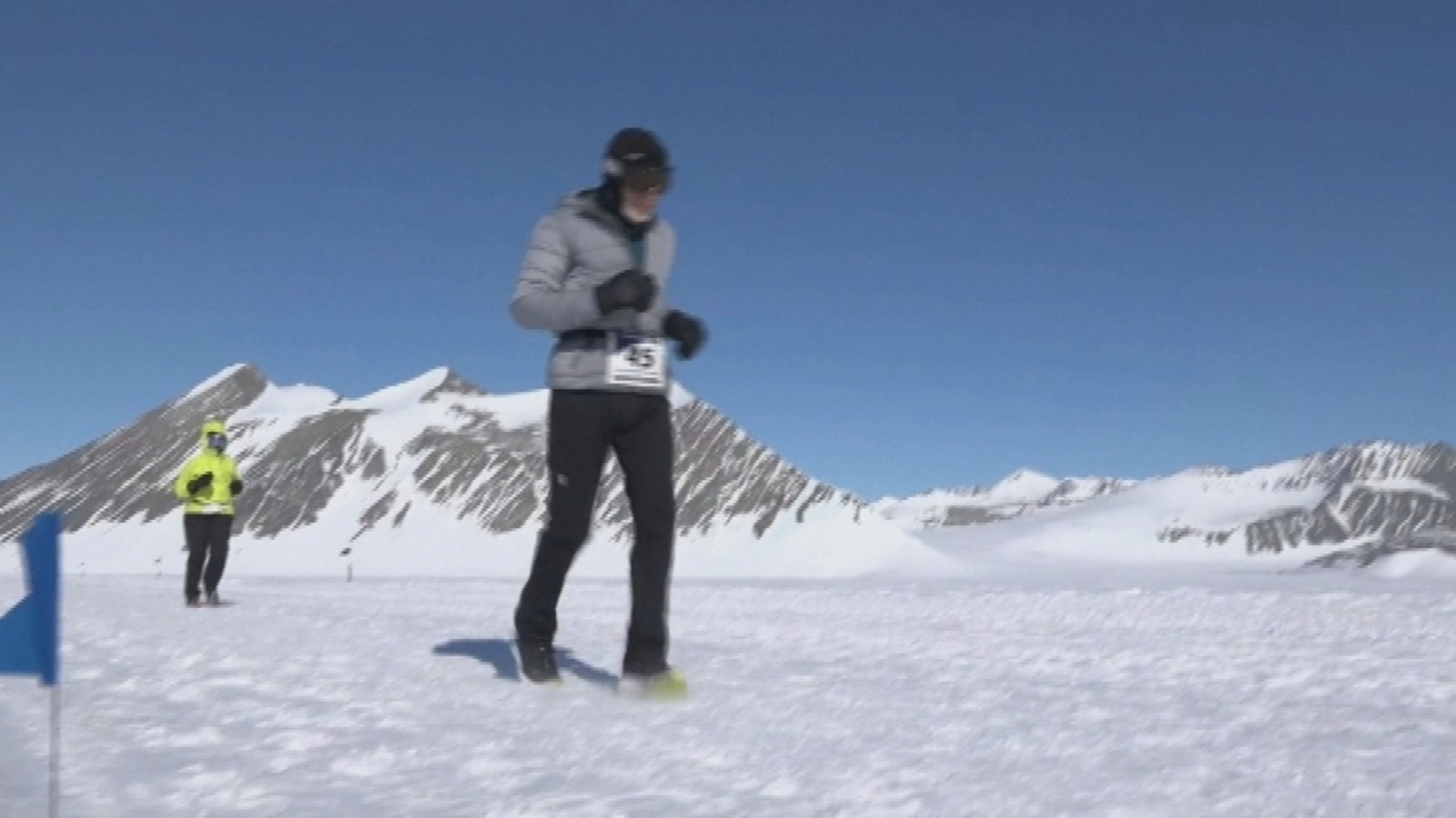Runners braved windy, yet sunny, conditions as they made two laps around the Union Glacier exploration camp just 965km from the South Pole.