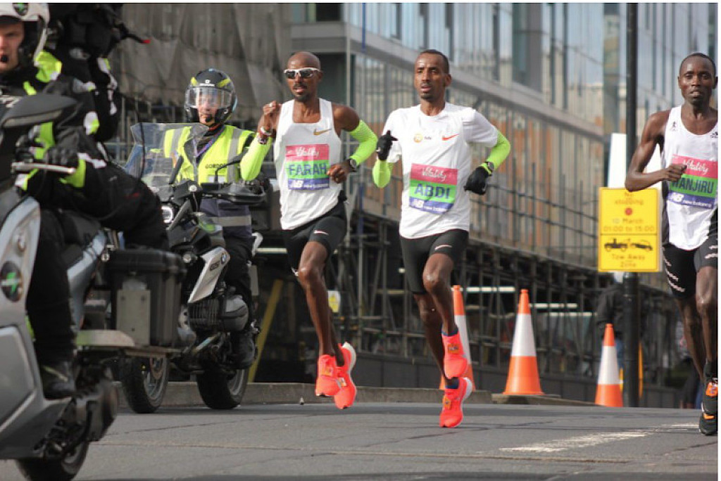 As Farah predicted, the race was tough, and he didn’t win it handily. His training partner Bashir Abdi finished only four seconds behind him in 1:03:10, and the top seven men all ran under 1:05.