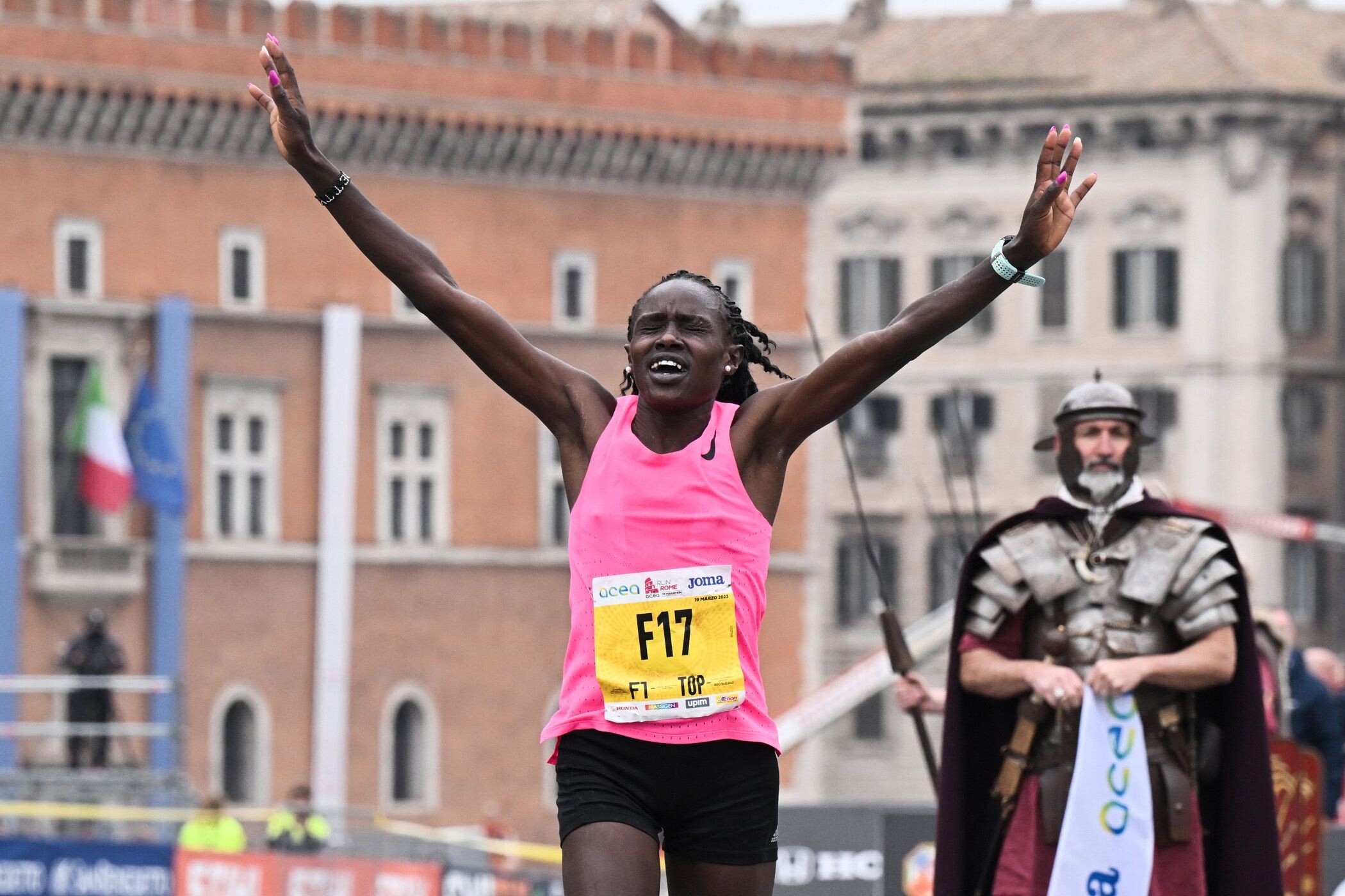 After going through 30km in 1:41:32, Ambi and Shure struggled in the final 10km. Chepkowny, meanwhile, reeled in the leaders and soon started to pull away. She crossed the finish line in 2:23:02, smashing her previous PB (2:30:28) with the third-fastest winning time ever in Rome.