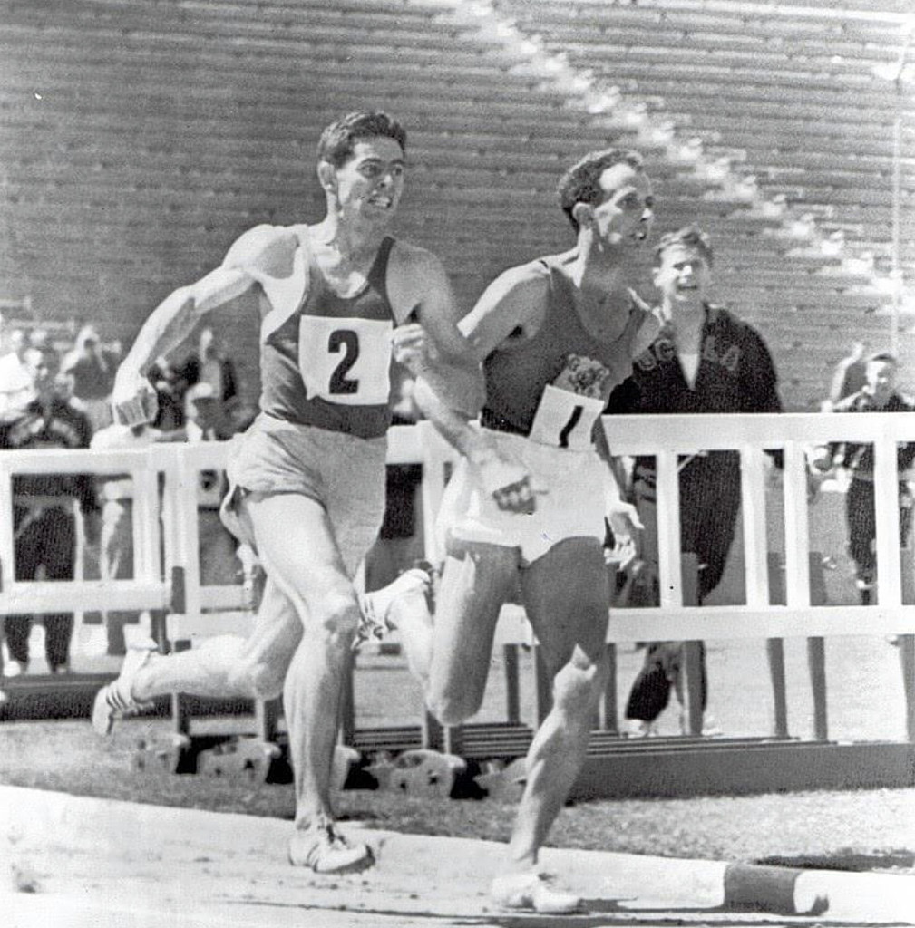 Bailey, the former Sydney rugby player, was in the race as 'mere filler'...his best at the time was in the 4:05 vicinity...well, long story short on the last lap Bailey pulls alongside Landy, pats him on the back and said "let's go John"...Landy tried to make a move but couldn't respond, and Bailey eeks out the surprise win, 3:58.6 to 3:58.7... thereby running the very first EVER sub 4:00 in the land of opportunity.