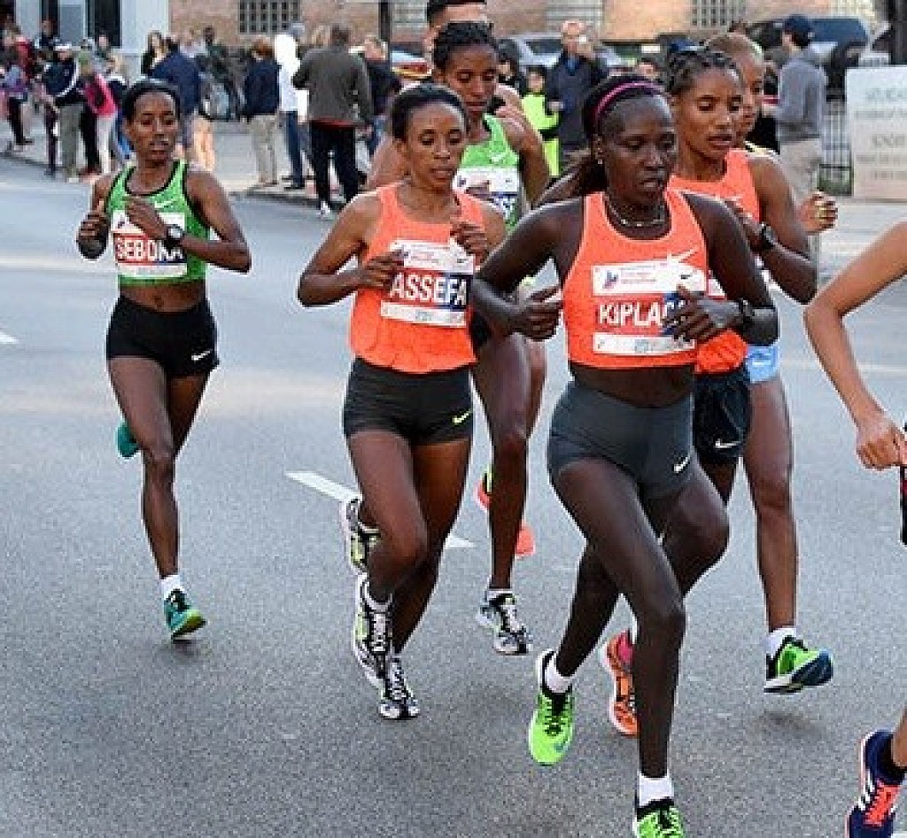 Here, there are five women who have all racked up faster times. Top of the list is the four-times winner of the world championship, and current Olympic champion in the 5000 meters trial, the Kenyan Vivian Cheruiyot (2 hours 18:31), the athlete with the best sports curriculum of all those taking part — men and women.