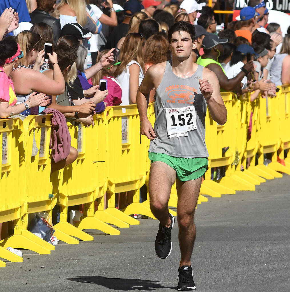 Geay opened it up to 30 yards coming down through the wildly cheering crowd on Court Street, and had no trouble cruising in for the win.