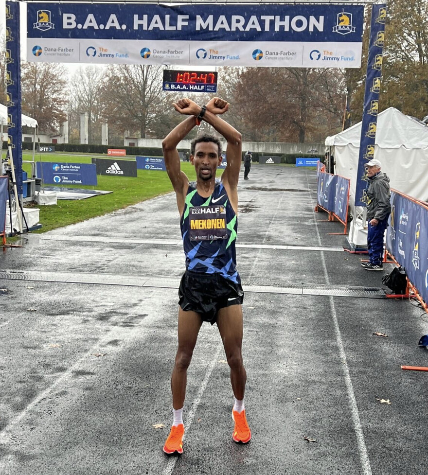 (From Let's Run) Teshome Mekonen was born and raised in the Tigray region of Ethiopia but has been based in the US since 2020 and gained his citizenship in August (we’ll have more on his story next week on LetsRun.com). Only four Americans have ever run faster than Mekonen’s pb in the half (60:02), and while that time dates from 2018, it’s also worth noting that Mekonen raced Conner Mantz at the NYC Half in March of this year and beat Mantz by a minute.