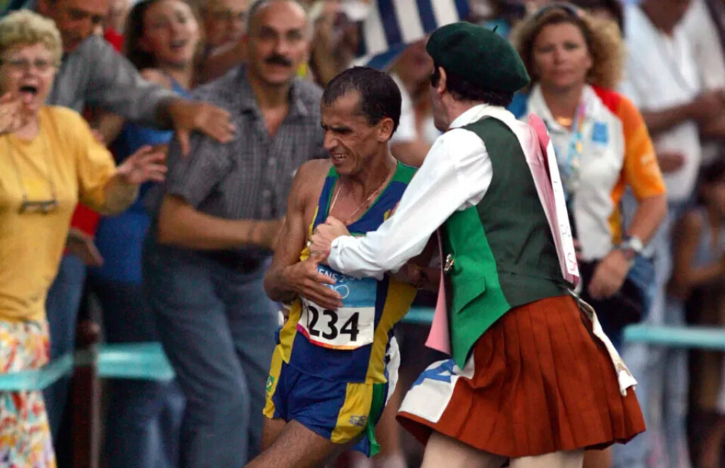 With just over four miles to go and a commanding 25-second lead, de Lima appeared destined to capture Brazil’s first-ever Olympic gold in the marathon. Then, without warning, a man leapt from the crowd and forcefully pushed him off the course.
