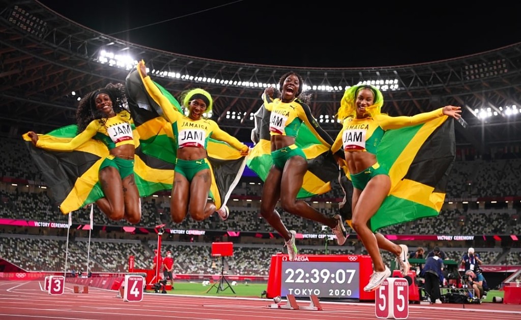 4x100m: Shashalee Forbes, Shelly-Ann Fraser-Pryce, Shericka Jackson, Natasha Morrison, Elaine Thompson-Herah, Natalliah Whyte, Briana Williams