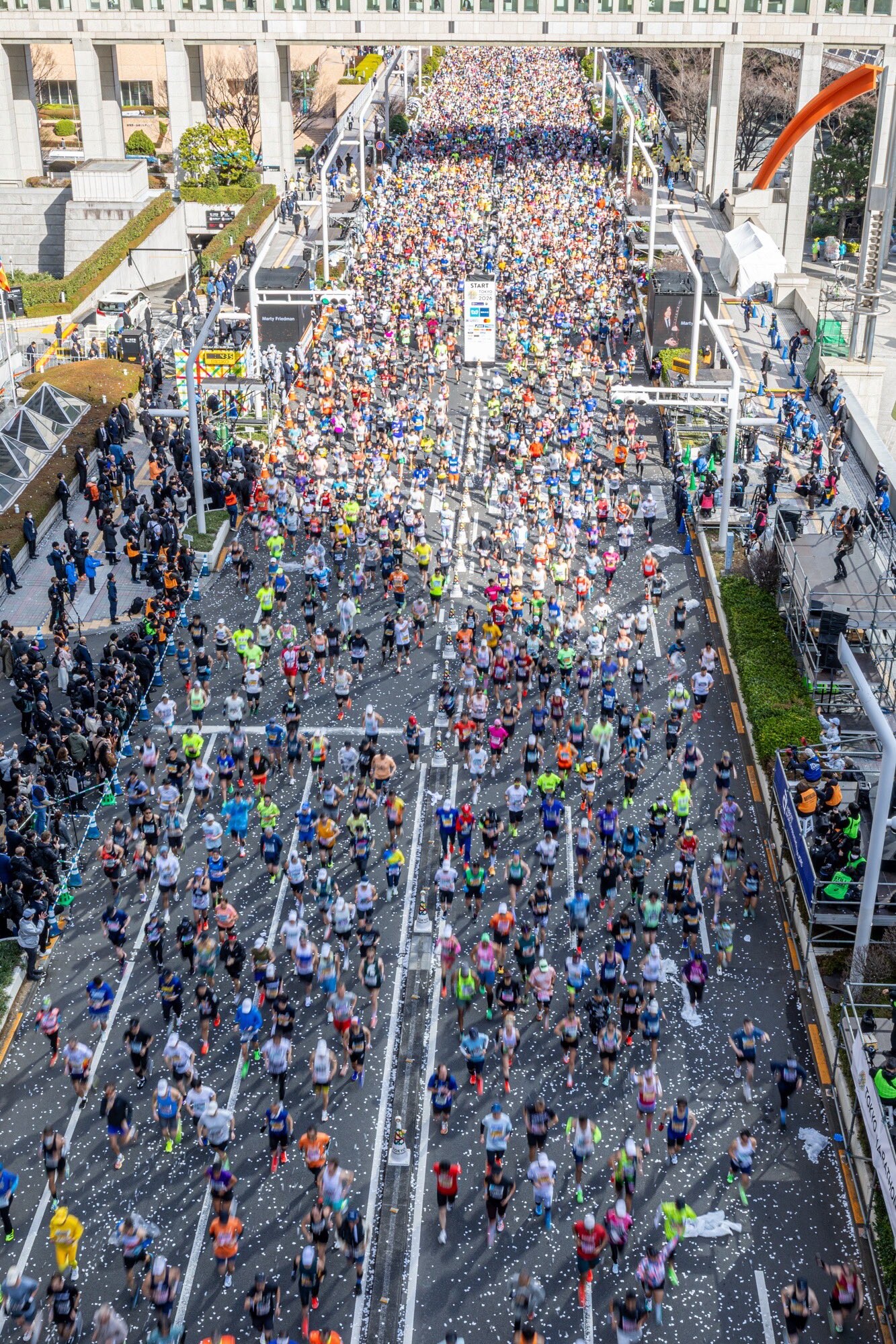 A fast, flat course, the field of 37,500 marathon runners will start their quest at the Tokyo Metropolitan Government Building before heading gently downhill for the first 5km.