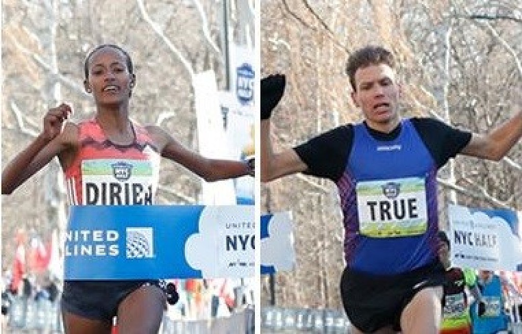 Ben True out sprints Dathan Ritzenhein to win the United Airlines New York City Half Marathon this morning. Running his first half marathon Ben posted a 1:02:39 beating 35-year-old Ritzenhein who finished three seconds back.