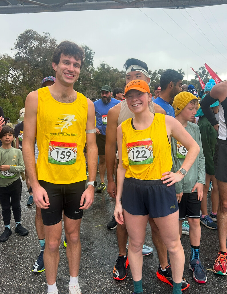 The 12th Christmas Double 15K (10K + break + 5K) took place this morning (Dec. 14) in Palo Alto, California, despite challenging weather conditions, including rain and wind gusts up to 50 mph. Double racing first-timers emerged as the winners: 25-year-old Ethan Phelps finished as the top male with a total time of 50:45, while 29-year-old Taryn Cordain claimed the top female spot with a time of 59:35. The event also featured the Bob Anderson’s Kids Mile, which set a record with 70 entries, as well as 10K and 5K races.