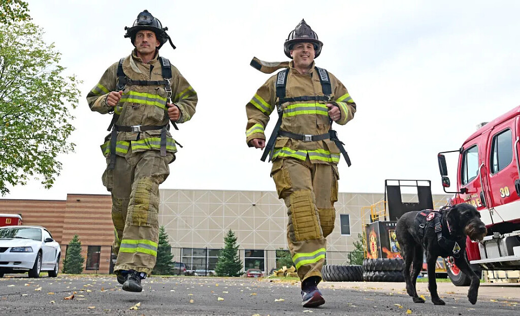 “While I’m wearing fewer shirts and I don’t have the restriction and I don’t have the mobility issues, I also have to be very aware of my body temperature and sustaining myself through hydration and fuel for five hours,” he said. “It was still uncomfortable, still almost 30 pounds of shirt, and the weight on my shoulders and my back especially was really, really hard.”