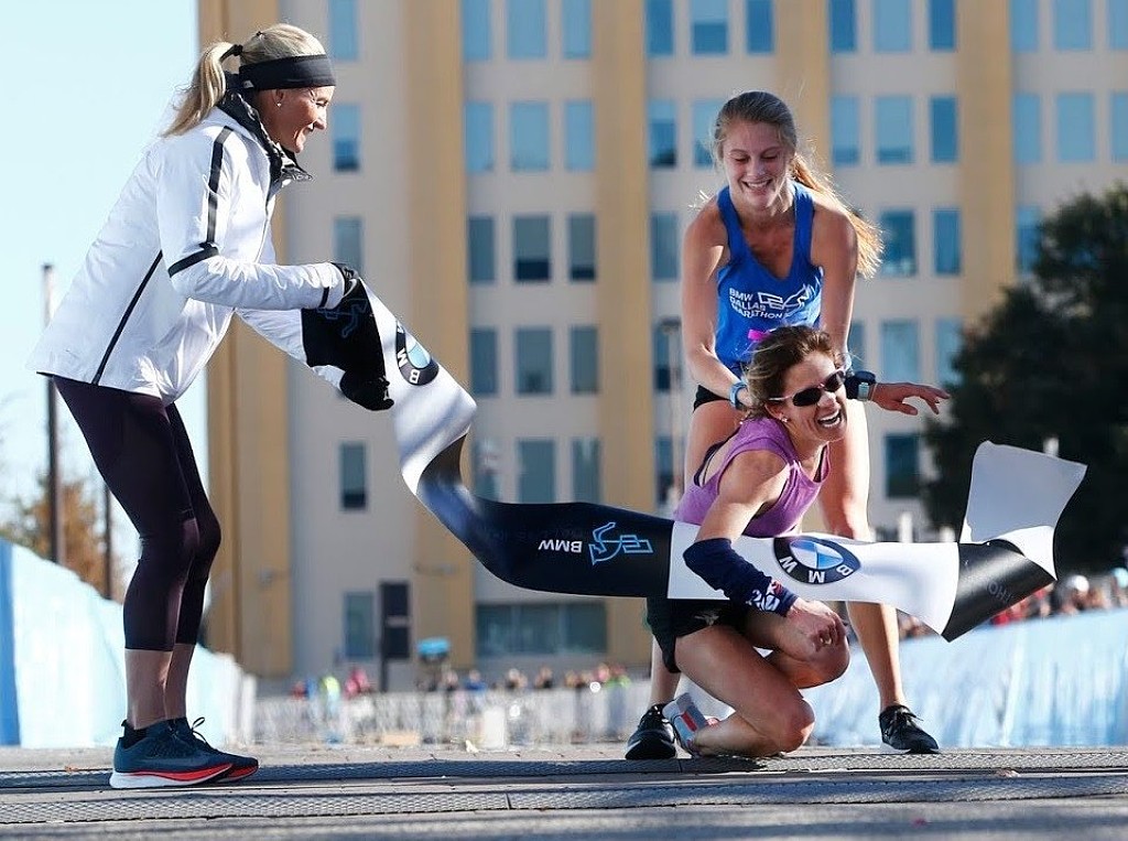 Chandler Self felt great, on pace to set a personal best and win her hometown marathon. She had more than a two-minute lead on her competition. But in the 25th mile, her quads locked up. "I remember thinking: 'This hurts so bad. The pain won't stop until I cross the finish line,'" recalled Self, a psychiatrist with the University of Texas Medical Branch in Galveston. "I kept pushing, willing my body to keep going." With the finish line in sight, her legs buckled. They wouldn't budge. She tried to get up but collapsed again. And again. And again. A fellow runner gave her a hand up. Self's body was so depleted that she needed a lift and a forward shove to reach the tape. She fell forward across the finish line in 2 hours, 53 minutes, 57 seconds. "It was like getting the wind knocked out of my sails," Self, an avid sailor, said. "And sailing with no wind is no fun. You can't move forward." Video of the finish garnered international attention. People were captivated by one runner's compassion toward another. For Self, who will again be among the elite women next Sunday in the marathon, last year's race represents her most notable career achievement and one of her most humiliating experiences. "The main takeaway for me is that I can fall, and I can get back up again," Self, 33, said. "I'm going to get up and try to run the Dallas Marathon again and cross the finish line strong." Added Self's dad, a marathoner and competitive sailor: "That was a huge learning moment, to sit there 200 yards from the finish line and have your body just collapse on you. It's huge to realize that every once in a while, everybody needs a hand up. Even in winning, you didn't do it all yourself."