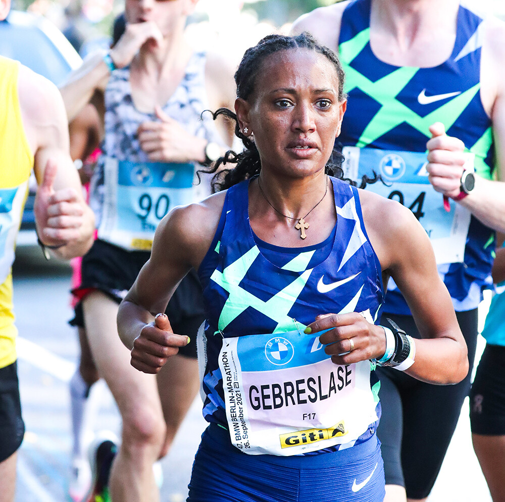 In 2021 Gebreslase made her debut in the marathon with an overwhelming victory at the Berlin Marathon, Germany, clocking 2:20:09.