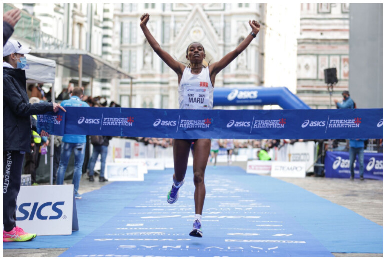 In the women’s race, Maru set the fourth fastest time in the history of the women's event in Florence with 2:27:17, beating her compatriot Megertu Ifa Geletu by four seconds. Kenya’s Mercy Kwambai finished third in 2:27:32 ahead of Morocco’s Souad Kabouchia (2:27:49).