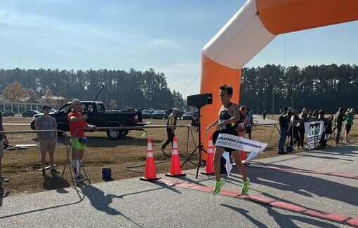With the finish line in sight, D’Amato pushed the pace once last time, crossing the finish line with her arms raised and a smile on her face, finishing the half marathon distance in 1:07:55.