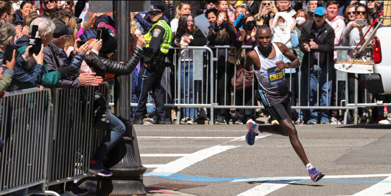 Chebet’s best races before today were in high-level marathons such as Valencia, Prague, and Seoul, not in World Marathon Majors. He placed third in Berlin in 2016, fourth in Tokyo in 2017, and fourth last fall in London. He started Boston once before today, in 2018, when he was among the one-third of elite entrants who dropped out during that year’s horrific wind, rain, and cold.
