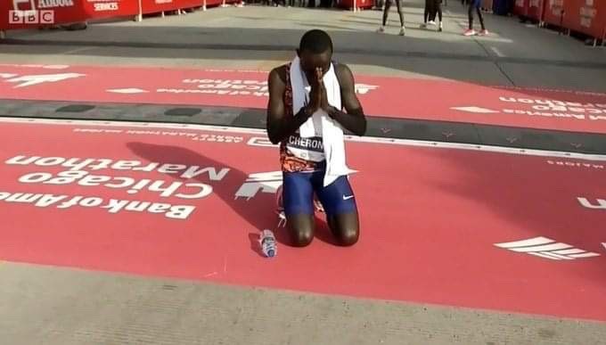 Lawrence has had a great form of consistent record of seven victories over 14 marathons.He crossed the finish line victoriously with arms in the air in celebration .He then knelt down on the ground and prayed.