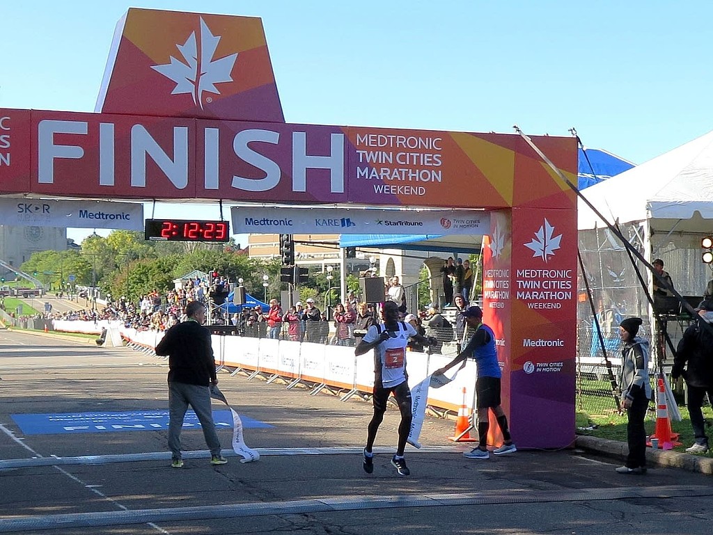 Two Minnesotans finished the race in the top three: St. Paul native Danny Docherty, now of Minneapolis, came in third in the men’s race in 2:15:55. In the women’s race, Dakotah Lindwurm of Burnsville placed second in 2:32:49.