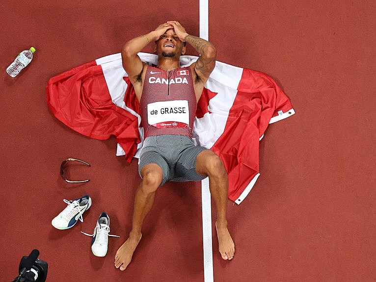 "It's my first time being so emotional on the track," said De Grasse, the first sprint gold medalist for Canada since Donovan Bailey won the 100 at the 1996 Atlanta Olympics. "I always thought I came up short winning bronze and silver, so it's just good to have that gold medal. No one can take that away from me."